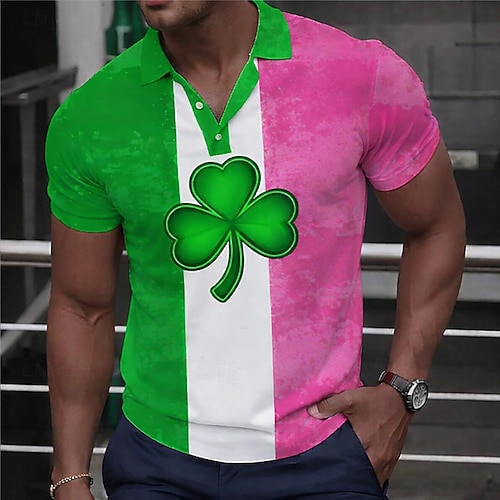 San Patrizio Per uomo Giorno di San Patrizio Polo Manica Corta Magliette polo Collo ripiegato Casual Vacanza Giorno di San Patrizio Ferie Festival 3D Stampato Estate Rosa scuro Rosso Arancione