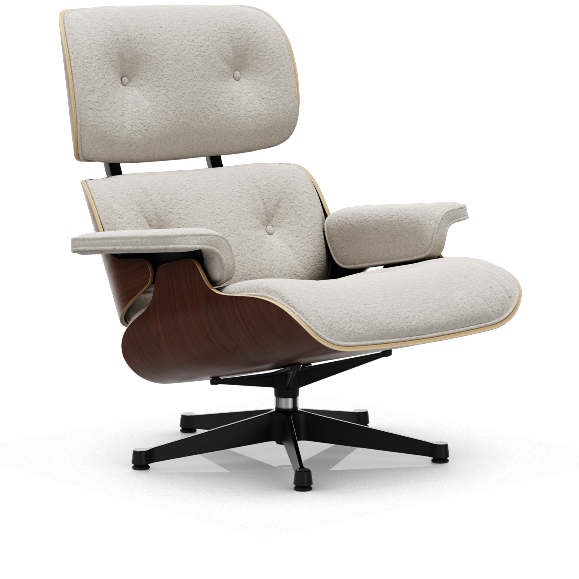 Vitra - Eames Lounge Chair Dark Walnut Nubia Ivory Pearl 01 Polished Aluminium/Deep Black - Fåtöljer - Charles & Ray Eames - Läder/Metall/Trä