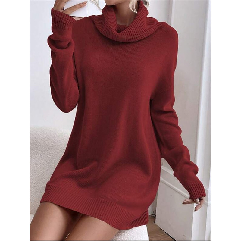 Women's Sweater Dress Casual Soft Pure Color Ribbed Turtleneck Knitted Long Sleeve Long Tops Knit Outdoor Daily Weekend Black Pink Fall Winter