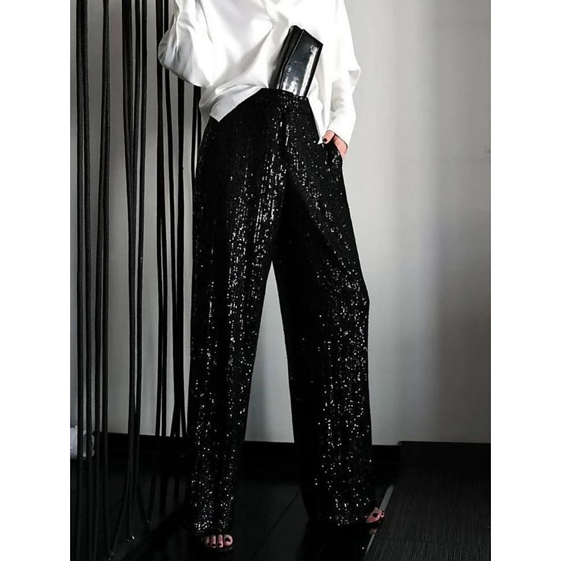Women's Straight-Leg Trousers Fashion Streetwear Sparkle Full Length High Waist Plain Shimmery Comfy Soft Comfortable Inelastic Outdoor Party Silver Black Pink Fuchsia Summer Spring Regular Fit