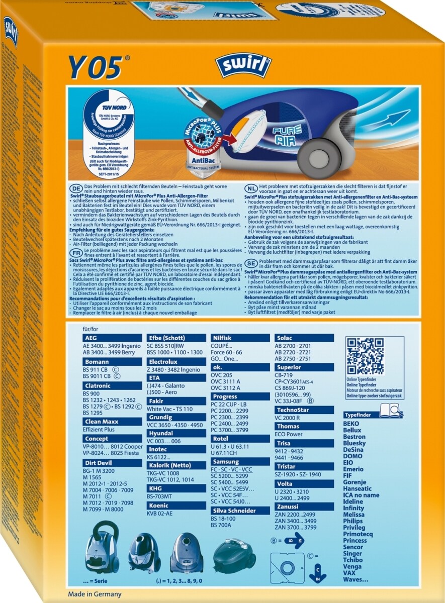 Swirl Staubsaugerbeutel Y 05 mit MicroporPlus-Filter VE=4 Stück