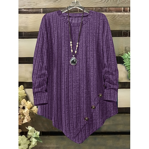 Per donna Blusa con texture Maglietta Semplice Casual Manica Lunga Girocollo Top Regolari Quotidiano Uscire Weekend Nero Blu marino Blu Verde Grigio Autunno