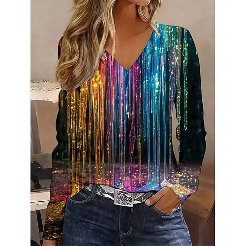 Per donna Camicia Blusa Semplice Essenziale Moderno Manica Lunga Scollo a V Top Regolari Quotidiano Ferie Paillettes Argento Nero Giallo Rosa Rosso Estate