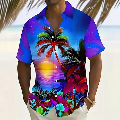 Per uomo Albero di cocco Colore sfumato Piante tropicali Camicia hawaiana Camicia con bottoni Manica corta Hawaiano Ricorrere Da mare Per eventi Abbigliamento mare Estate Primavera Collo ripiegabile