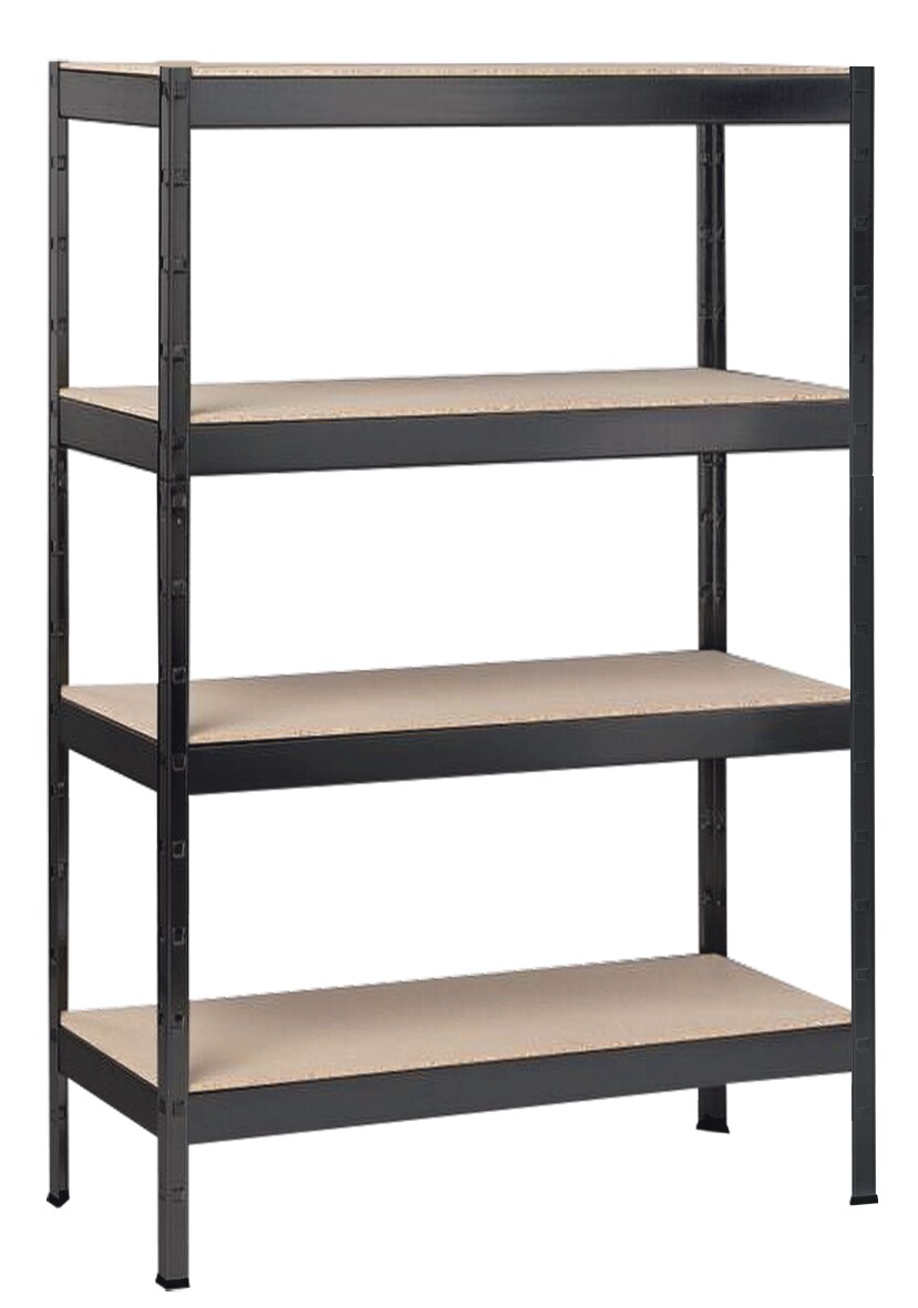 SCHULTE Regalwelt Schwerlastregal mit 4 Holzböden, 180x100x35 cm (HxBxT), Traglast pro Ebene ca. 90 Kg, schwarz-Struktur, Lagerregal, Kellerregal