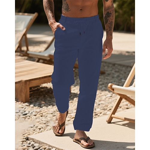 Per uomo Pantaloni di Lino Pantaloni Pantaloni Estivi Pantaloni da Spiaggia Tasca Coulisse Elastico in vita Semplice Comodità Traspirante Vacanza Quotidiano Ferie Hawaiano Boho Nero Blu marino