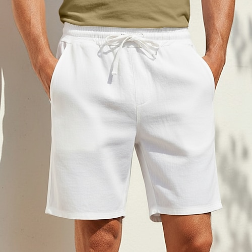 Per uomo Shorts Shorts di Lino Pantaloncini Estivi Shorts da Spiaggia Tasca Elastico in vita Coulisse Semplice Comodità Traspirante Corto Vacanza Ferie Spiaggia Hawaiano Boho Nero Bianco