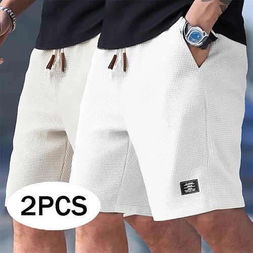 Per uomo Pantaloncini Waffle Shorts Pantaloncini casual Tasca Elastico in vita Testurizzato Semplice Comodità Traspirante Lunghezza al ginocchio Casuale All'aperto Spiaggia Vacanza Moda Giallo / nero