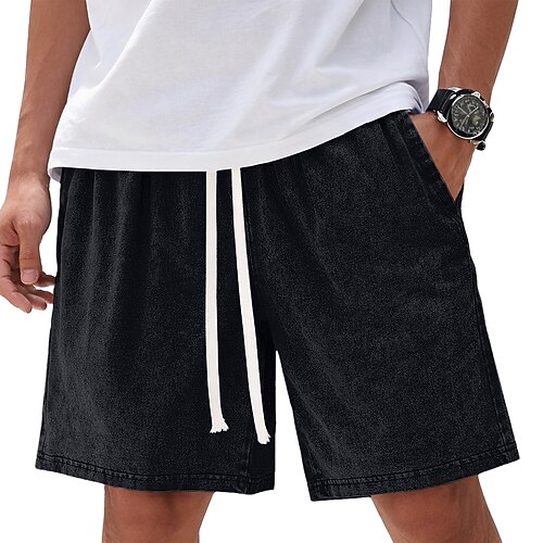 Per uomo 100% cotone Shorts Pantaloncini casual Pantaloncini con lavaggio acido Tasca Elastico in vita Lavato Comodità Traspirante Lunghezza al ginocchio Casuale All'aperto Spiaggia Vacanza Moda Nero
