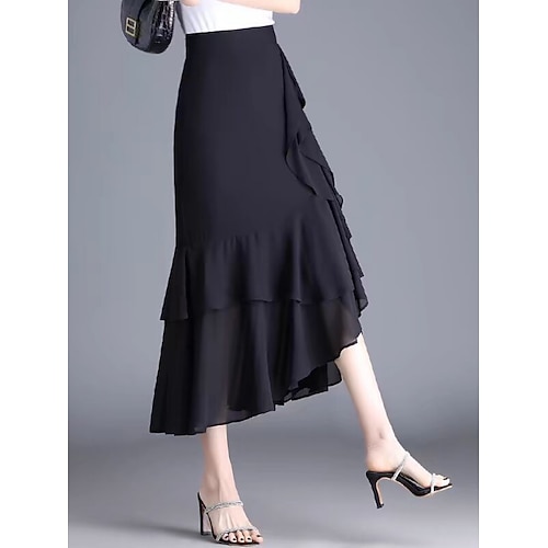 Per donna Gonna da vacanza Elegante Moda Casual Midi Vita Alta Gonne Semplice Arruffato Micro-elastico Quotidiano Streetwear Nero Rosso Viola Caffè Estate Chiffon Poliestere