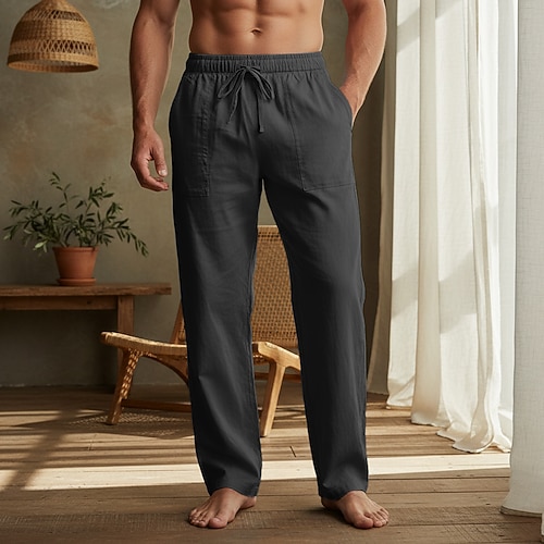 Per uomo Pantaloni di Lino Pantaloni Pantaloni Estivi Pantaloni da Spiaggia Coulisse Tasca Elastico in vita Semplice Comodità Traspirante Vacanza Quotidiano Ferie Hawaiano Boho Cáqui Escuro Nero