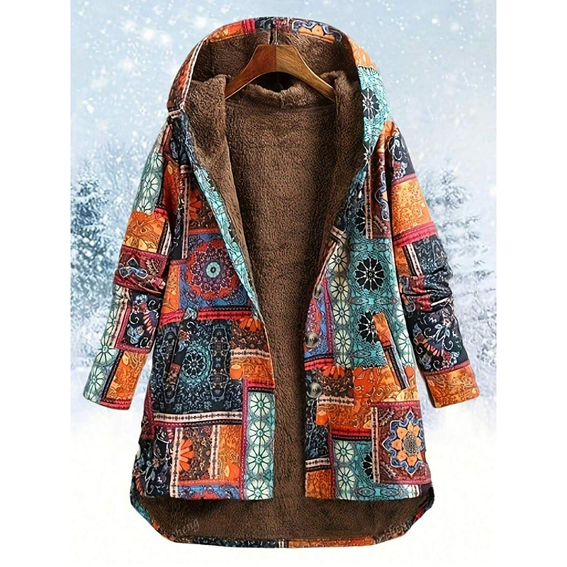 Women's Sherpa Jacket Casual Jacket Comfortable Breathable Print Casual Geometric Vacation Street Casual Daily Wear Open Front Long Hooded Regular Fit Long Sleeve Outerwear Orange Spring Fall