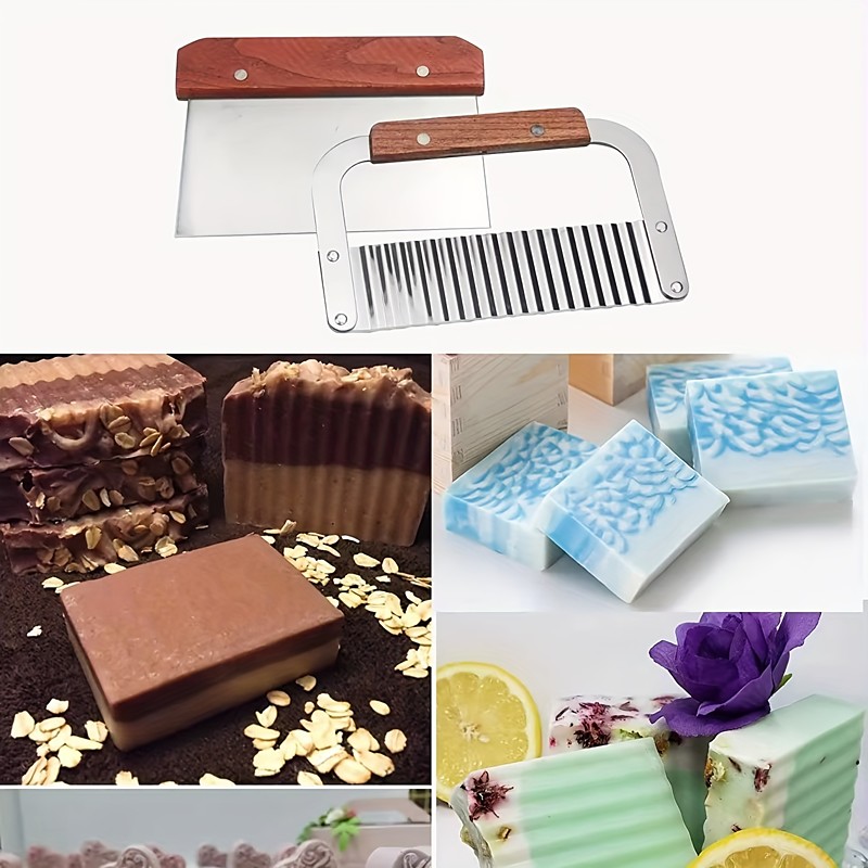 Silicone Soap Molds for Soap Making Kit Soap Making Supplies with Soap Cutters, Wooden Box, Wavy and Straight Scraper