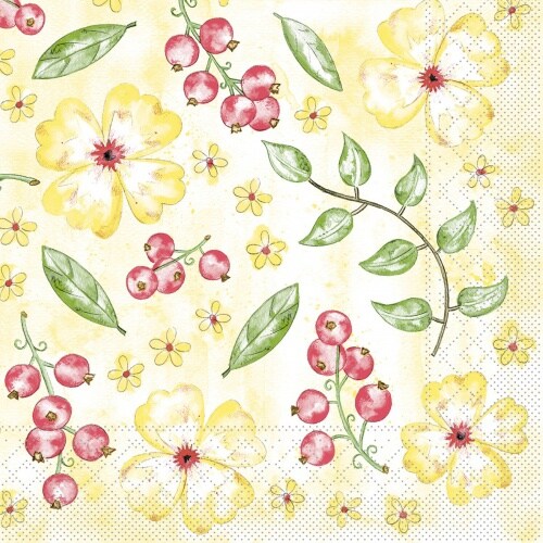 Mank Serviette aus Tissue - Janne, 33 x 33 cm, 100 Stück - Beeren Blumen Blüten Floral