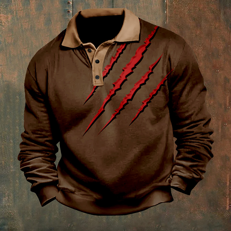 Men's Claw Marks Polo Shirts Pullover Long Sleeve Polo Shirts Collar Vintage Casual Outdoor Vacation Streetwear 3D Print Buttons Fall Winter Dark Brown Black Dark Green