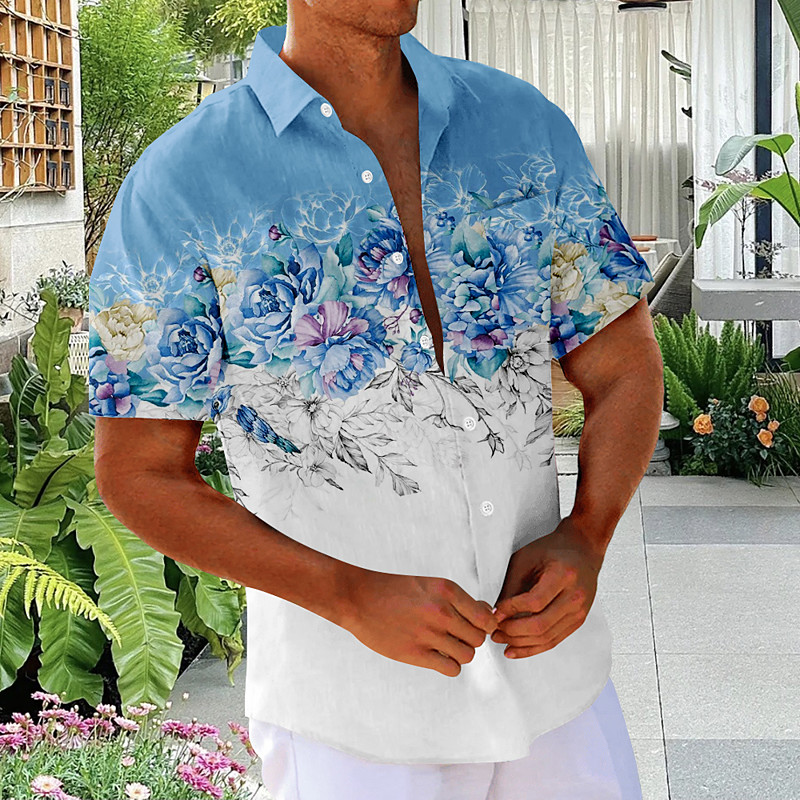 Men's Floral Print Flowers Shirt Summer Hawaiian Shirt Button Up Shirt Short Sleeve Hawaiian Vacation Holiday Beach Wear Summer Turndown 3D Print Front One Pocket Linen Like Shirt Pink Blue Green