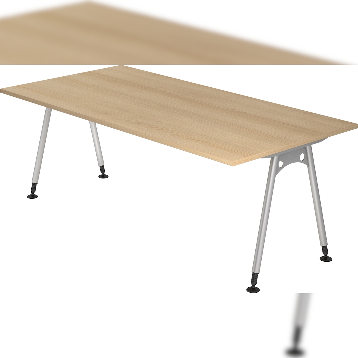 bümö Schreibtisch N-Serie 160x80 cm, Tischplatte aus Holz in Buche, Gestell aus Metall in Silber - PC Tisch, Computertisch für's Büro, Office