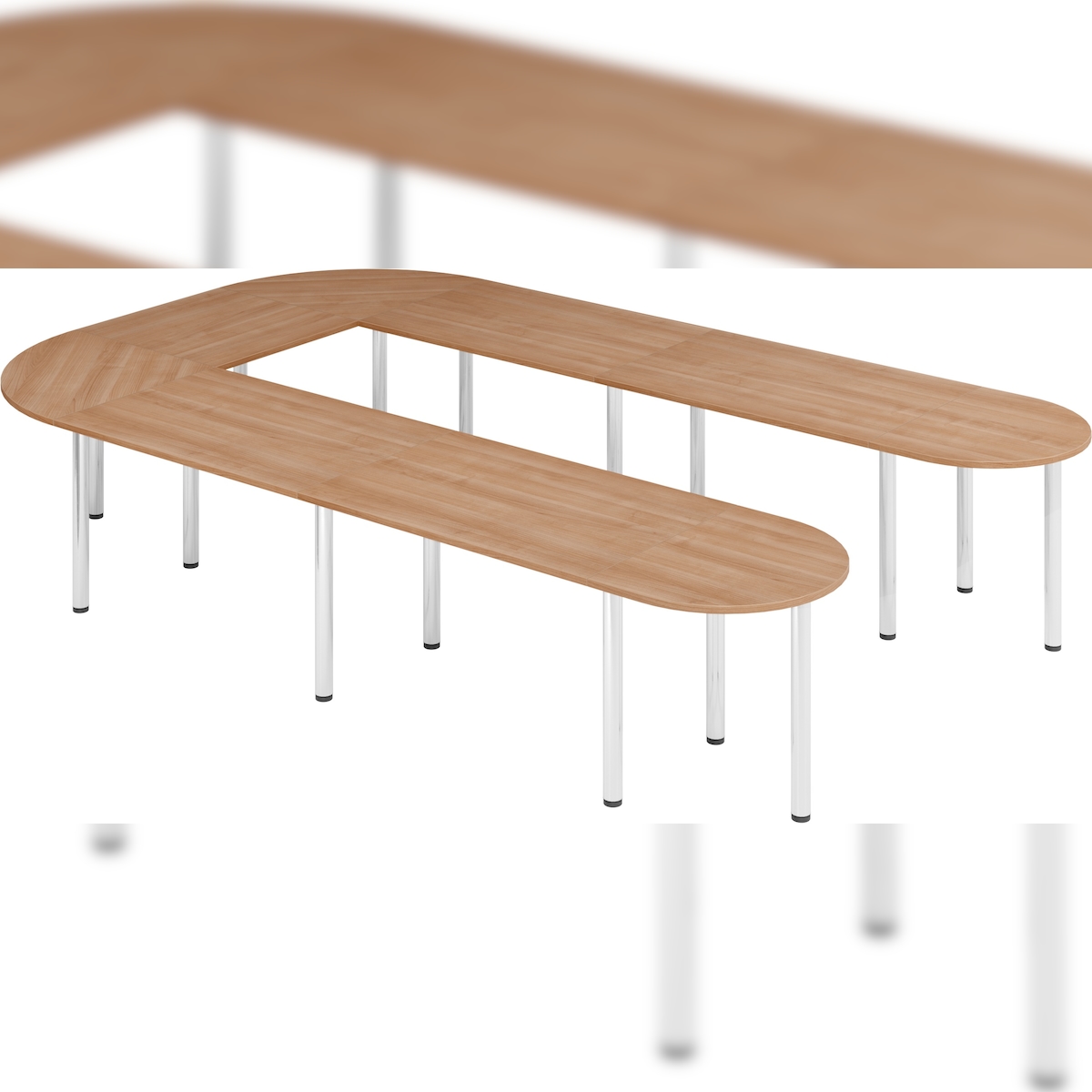 bümö Konferenztisch U-Form 380x240 cm großer Besprechungstisch in Nussbaum, Besprechungstisch mit Chromfüßen, Meetingtisch für 11 Personen, Tisch für
