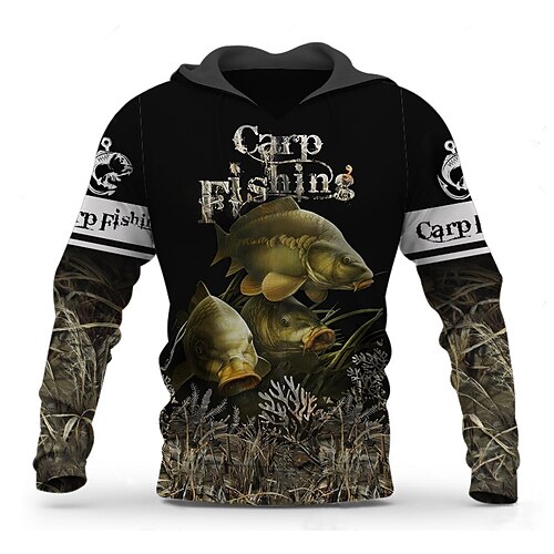 Herren Grafik Tiermotiv Fisch Kapuzensweatshirt Kapuzenshirts Pullover Streetwear Designer Lässig Große Größen Langarm Mit Kapuze Sport Outdoor Täglich Leichtes Khaki. Schwarz Königsblau Blau Khaki