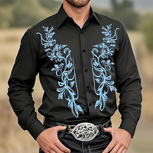 Per uomo Stampa Floreale Ferro di cavallo Fiori Camicia Camicia Western Camicia da cowboy Manica Lunga Vintage Retrò All'aperto Vacanza Primavera Autunno Collo ripiegato Stampa 3D Camicia tipo lino