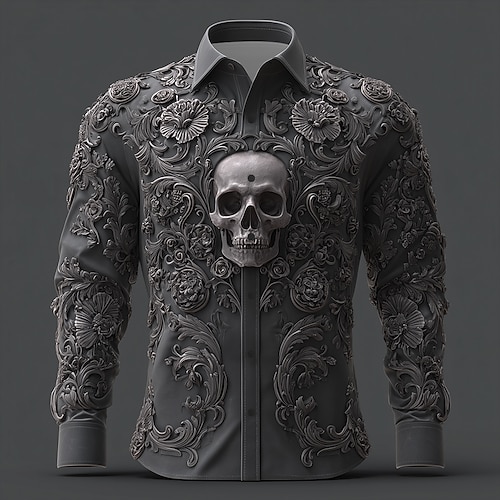 Per uomo Teschio Stampa Floreale Giorno dei Morti Camicia Camicia con Bottoni Manica Lunga Vintage Retrò Stile gotico oscuro All'aperto Ferie Primavera Autunno Collo ripiegato Stampa 3D Camicia tipo
