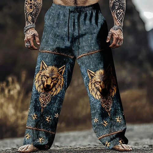 Per uomo Lupo Vichingo Arte celtica Pantaloni Pantaloni Larghi Pantaloni casual Misura del girovita medio Vintage Retrò All'aperto Casuale Coulisse elastica in vita Pantaloni tipo lino con tasche
