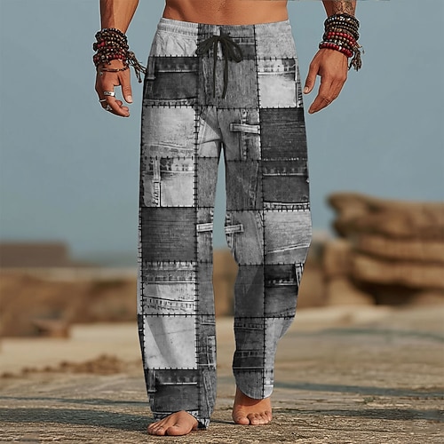 Per uomo Geometrico Blocco di colori Patchwork Pantaloni Pantaloni Larghi Pantaloni casual Misura del girovita medio Moda Casa All'aperto Vacanza Coulisse elastica in vita Pantaloni tipo lino con