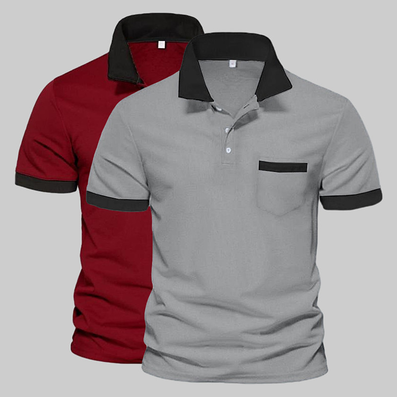 Men's Polo Shirts Golf Shirt Business Casual Lapel Short Sleeve Color Block Pocket 2 Piece Summer All Seasons Regular Fit Blue and White Gray / Red Blue Gray Blue Navy Navy white WhiteBlack