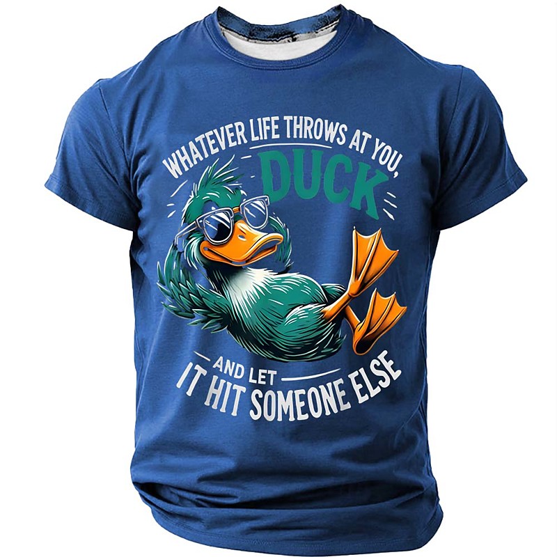 Mens Short Sleeve Graphic T-Shirt, Funny Duck Pun Quote Tee: 'Whatever Life Throws At You, Duck And Let It Hit Someone Else'