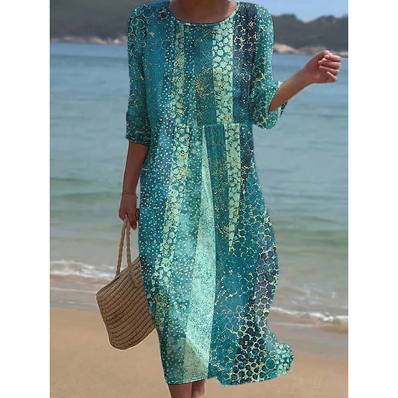 Women's Maxi Dress Kaftan 3/4 Length Sleeve Crew Neck Casual Shift Dress A Line Dress Dress Boho Daily Holiday Going out Geometric Pink Green Spring Fall