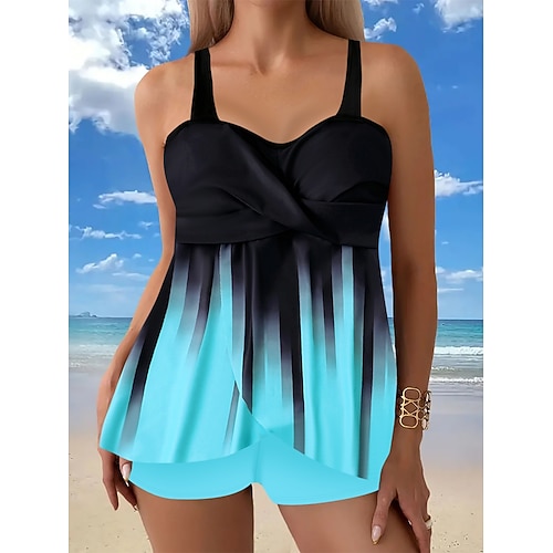 Costume da bagno 2 pezzi tankini donna con zip davanti palma pantaloni corti controllo della pancia vita alta snellente schiena scoperta moda da spiaggia floreale scollo rotondo maniche lunghe