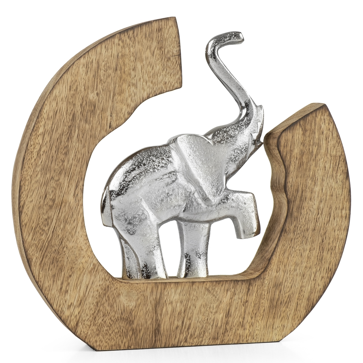Moritz Dekofigur Elefant Silber Aluminium in Hufeisen Mangoholz-Rahmen ca. 24 x 3,5 x 23 cm moderne Tierfigur Glücksbringe