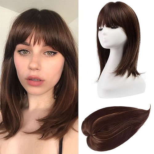 Topper per capelli da 14 pollici per donne con capelli diradati, parrucche, topper per capelli diradati con frangia, copertura base grande, topper per capelli sintetici, parti per capelli con clip,