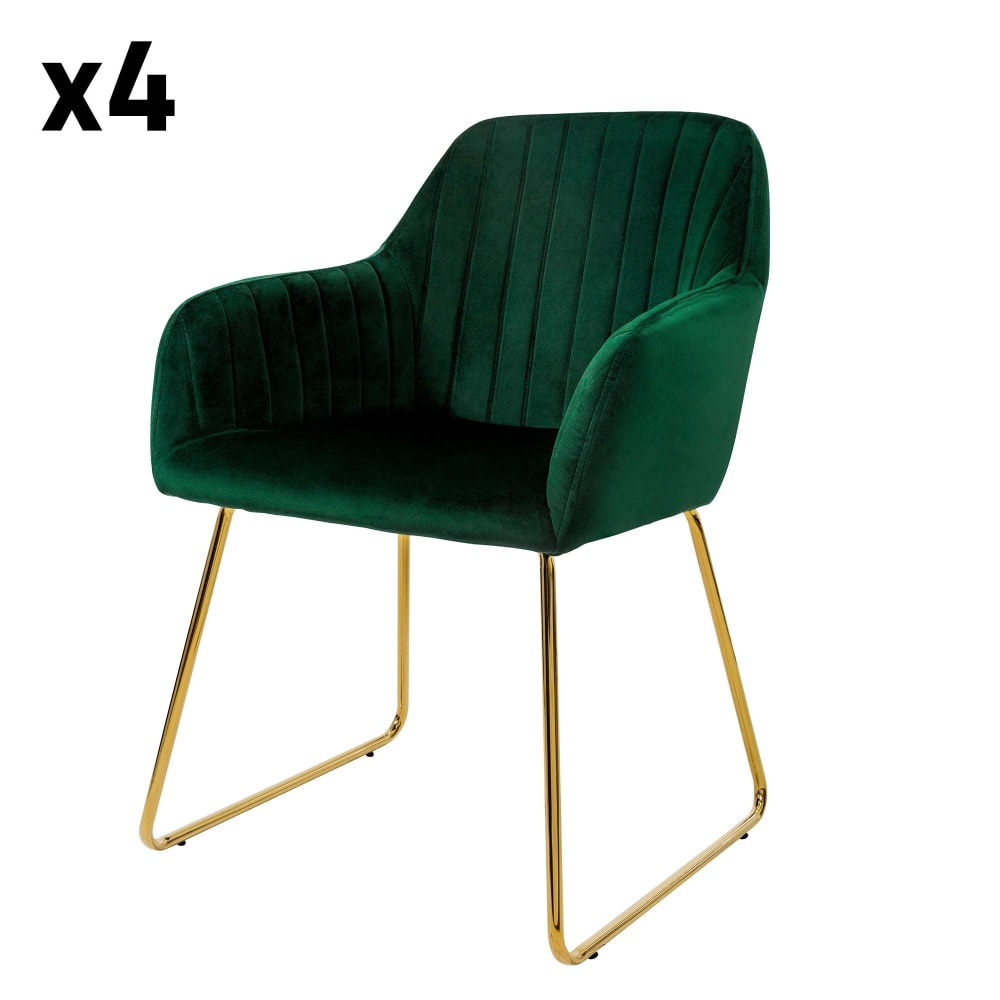 Set di 4 sedie da pranzo in velluto, verde