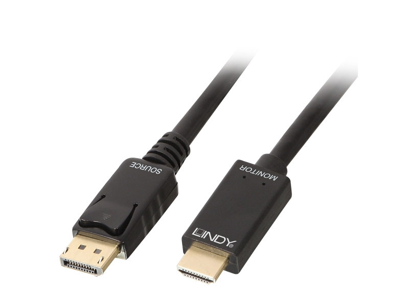 Lindy 36924, 5 m, DisplayPort, HDMI-tyyppi A (vakio), Uros, Uros, 3840 x 2160 pikseliä