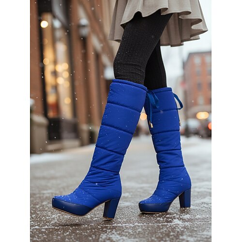 stivali alti fino al ginocchio trapuntati impermeabili da donna: stivali invernali con tacco caldi e isolati, moda elegante per il freddo, per la neve, abbigliamento all'aperto e gite in vacanza