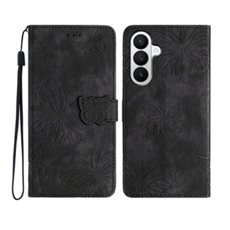 Samsung Galaxy S26 Pro Plånboksfodral Fjärilsmönster Konstläder - Svart