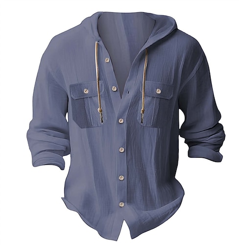 Per uomo Camicia Camicia Estiva Camicia casual Camicia da Spiaggia Camicia con Bottoni Marrone Scuro Nero Bianco Blu marino Azzurro cielo Manica Lunga Semplice Con Cappuccio Vacanza Casuale Tasca