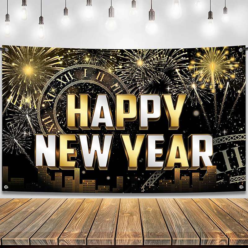 New Year Tapestry Banners Blanket Happy New Year Cute Romantic 3D Bedroom Living Room Dorm Teens Room College Dorm Wall Porch Home Decor