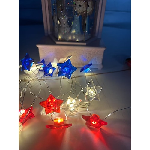 Lichterkette mit Batterie- und USB-Betrieb, LEDs in Rot, Weiß und Blau, Sternen und amerikanischer Flagge für patriotische Dekorationen zu Hause, zum Unabhängigkeitstag oder 4. Juli