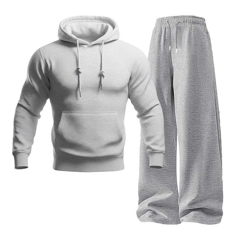 Men's Matching Sets Black Hoodie Sweatshirt Sweatpants Wide Leg Sweatpants Trousers Sets Long Sleeve Hooded Outdoor Vacation Plain Pocket 2 Piece Polyester Spring