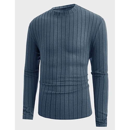 Herren T Shirt T-Shirt Langarmshirt Langarm Rundhalsausschnitt Frühling Herbst Einfach Grubenstreifen Mode Designer Basic Stricken Urlaub Straße Ausgehen Blau Hellgrau Armeegrün Top T-Shirt für