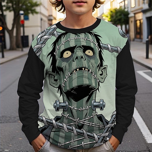 Jungen 3D Grafik Geometrisch T-Shirt Langarm Frühling Herbst Mode Basic Kinder 4-12 Jahre Rundhalsausschnitt Outdoor Lässig Täglich Normale Passform