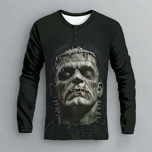 Herren Menschliches Gesicht Henley Hemd Langarm Mode Niedlich Täglich Lässig Ferien Ausgehen Herbst Frühling Herbst 1# 2# 3# Henley Henley T-Shirt