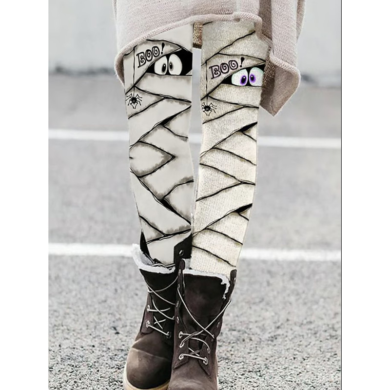 Damen Leggings Urlaub Vintage Mode Vollständig Länge Hohe Taille Grafik Schädel Monster Druck Weich Atmungsaktiv Dehnbar Outdoor Urlaub Street Dunkelgrau Hellbraun Orange Hellgrau Sommer Frühling