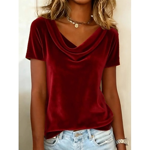 Per donna Maglietta Tinta unica Moda Classico Casual Manica Corta Collo di pile Top Regolari Quotidiano Uscire Weekend Blu Argento Nero Rosa Vino Estate Primavera