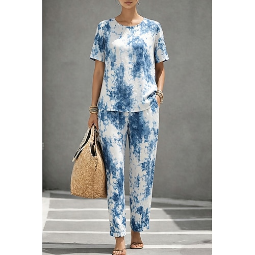 Per donna Set di biancheria in cotone Manica Corta Girocollo Grafico A Pois Elegante Bohemien Attivo Casuale Quotidiano Blu Nero Arancione Estate Vestibilità regolare