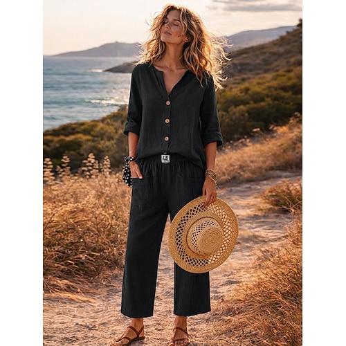 completi coordinati da donna camicie di cotone set camicia pantaloni di cotone pantaloni casual camicia mix completo coordinato 2 pezzi sportivo streetwear semplice quotidiano manica lunga estate