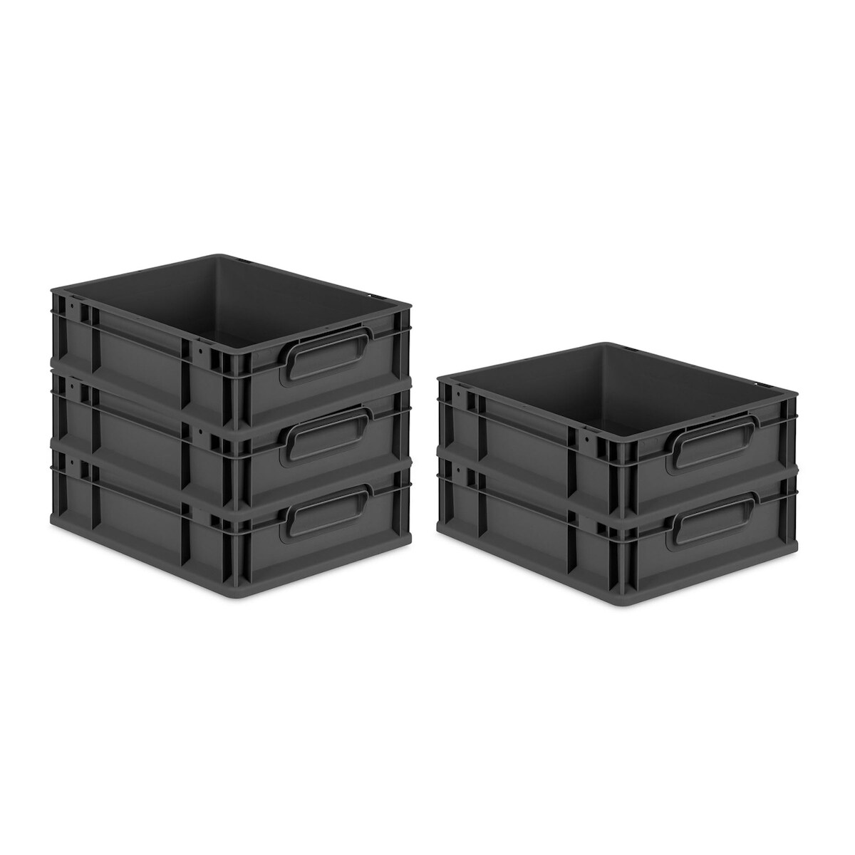 PROREGAL SparSet 5x Eurobox NextGen Grip, HxBxT 12x30x40cm, 11 Liter, Griffe zu, Schwarz, Eurobehälter, Transportbehälter