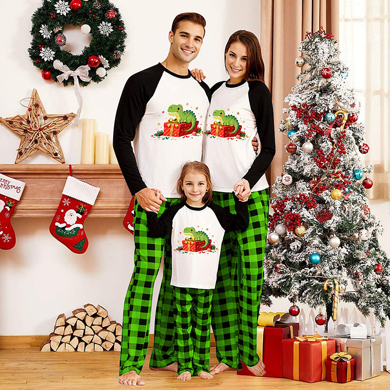 Family Christmas Christmas Family Pajamas Pajamas Family Sets Plaid Dinosaur Christmas Tree Home Print Deep Green Light Green Army Green Long Sleeve Daily Matching Outfits